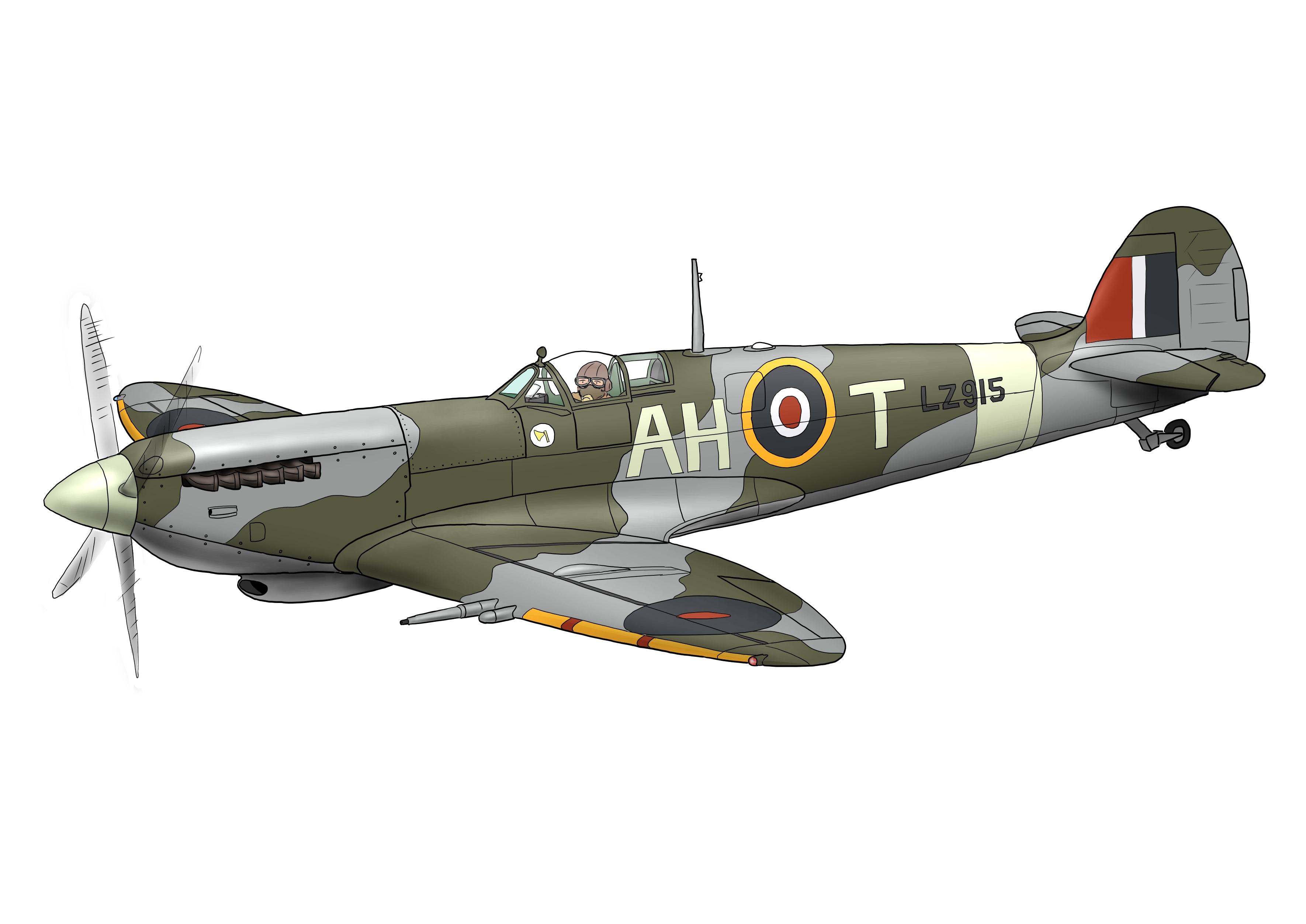 シリアルは間違い、正しくはlz919。332sq(ノルウェー人部隊)所属機。2ndTAF隷下だったのでこのチョイス。個人的に後期のスピットファイアで一番華のある仕事をしてそうなのが2ndTAF所属機だと思ってて…。 lz919はその後部隊を転々としたのちエンジニアスクールに移されたそうな。なおlz915はそもそも332sqには所属しておらず、どうも戦時中に失われてるっぽい。